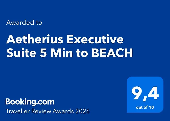 The property includes a balcony, a kitchen, and a living room with an air conditioner for utmost comfort. Aetherius Executive Suite 5 Min To Beach is equipped with a bathroom that features hairdryers, towels, and bathrobes. Furthermore, a separate toilet and a shower is available.